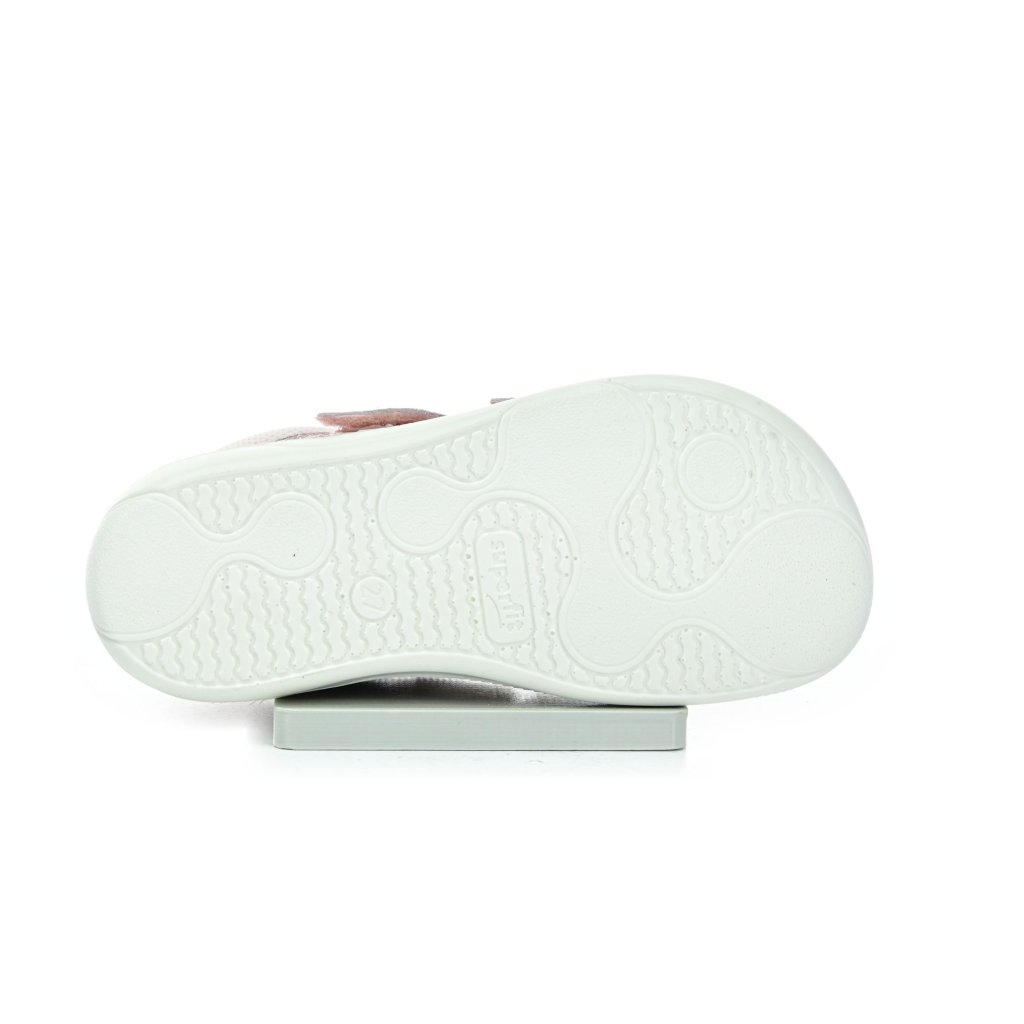 Children's all-season Superfit ankle barefoot shoes in a pink glitter design fit perfectly on narrow feet and hold firmly in the heel thanks to Velcro fasteners. The flexible sole with zero drop supports natural movement with every step.