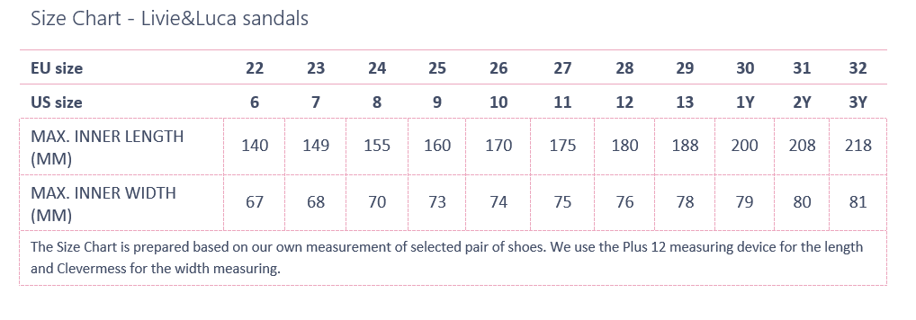 EU size: 22, Inner shoe length: 140, Inner shoe width: 67
