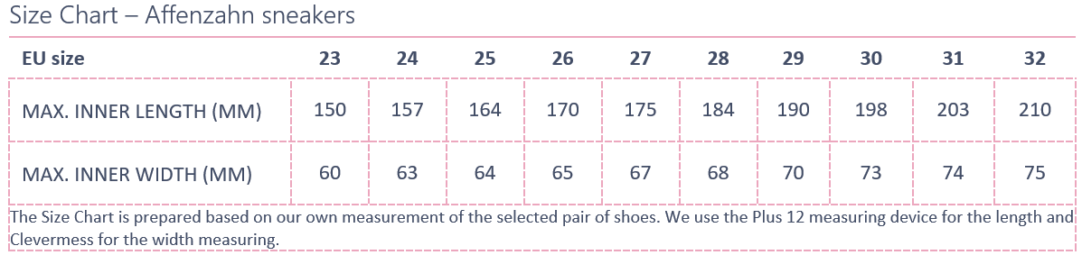 EU size: 23, Inner shoe length: 150, Inner shoe width: 60