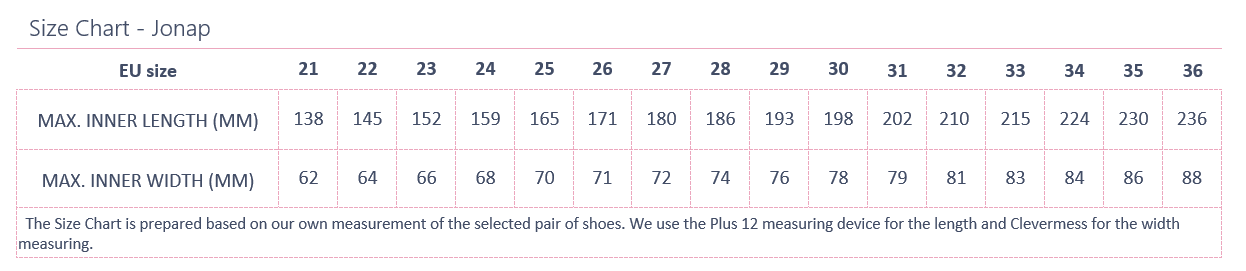 EU size: 21, Inner shoe length: 138, Inner shoe width: 62