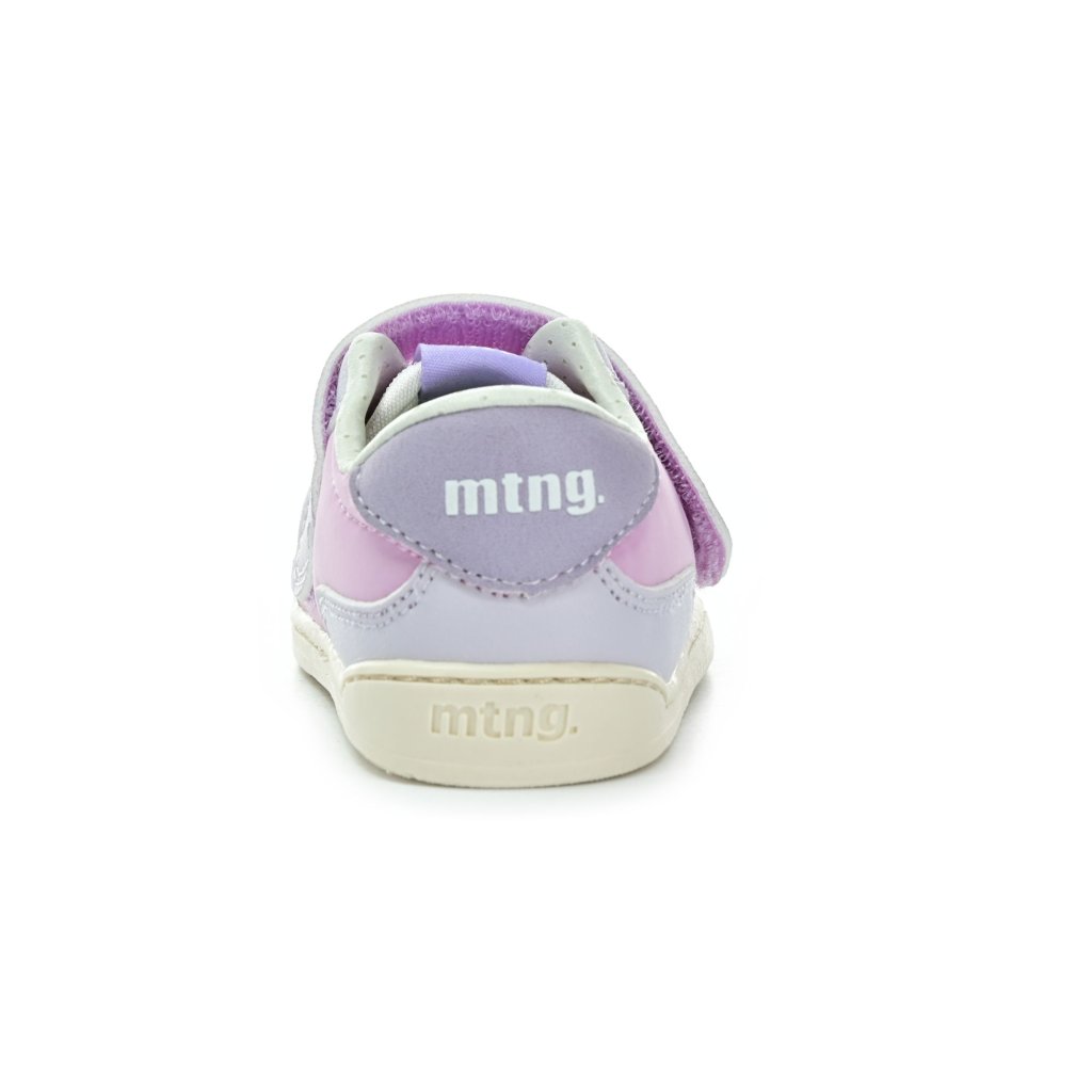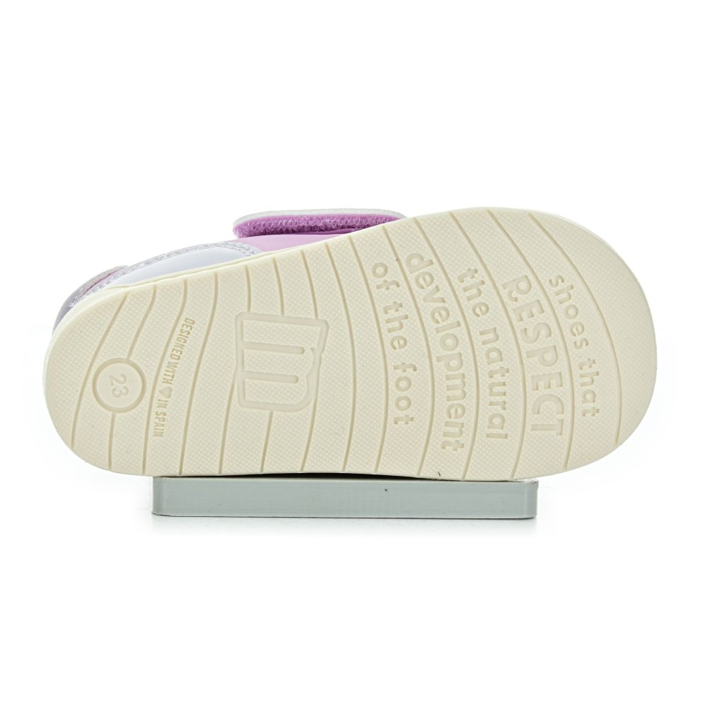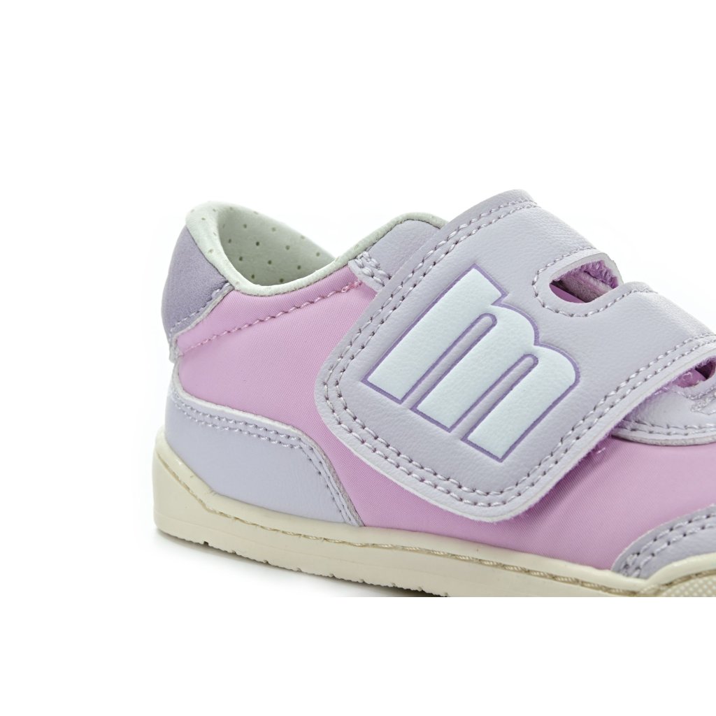 Children's barefoot sneakers Mtng in a soft pink-purple design are light and flexible shoes that allow children to move naturally during their first steps and everyday exploration. The wide Velcro makes it easy to put on and holds well on the foot even during active running and games.