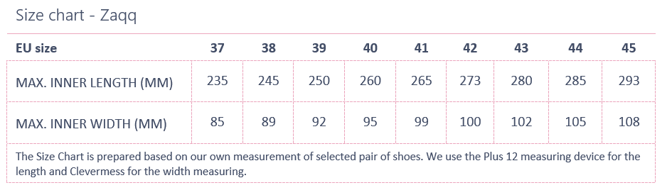 EU size: 38, Inner shoe length: 245, Inner shoe width: 89